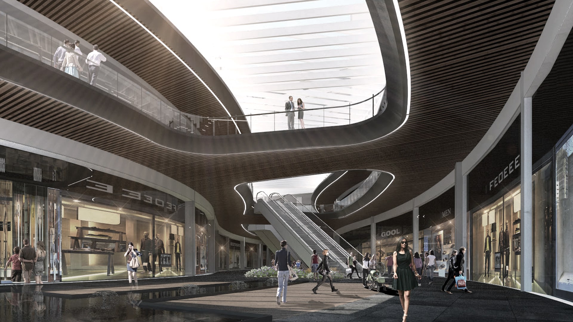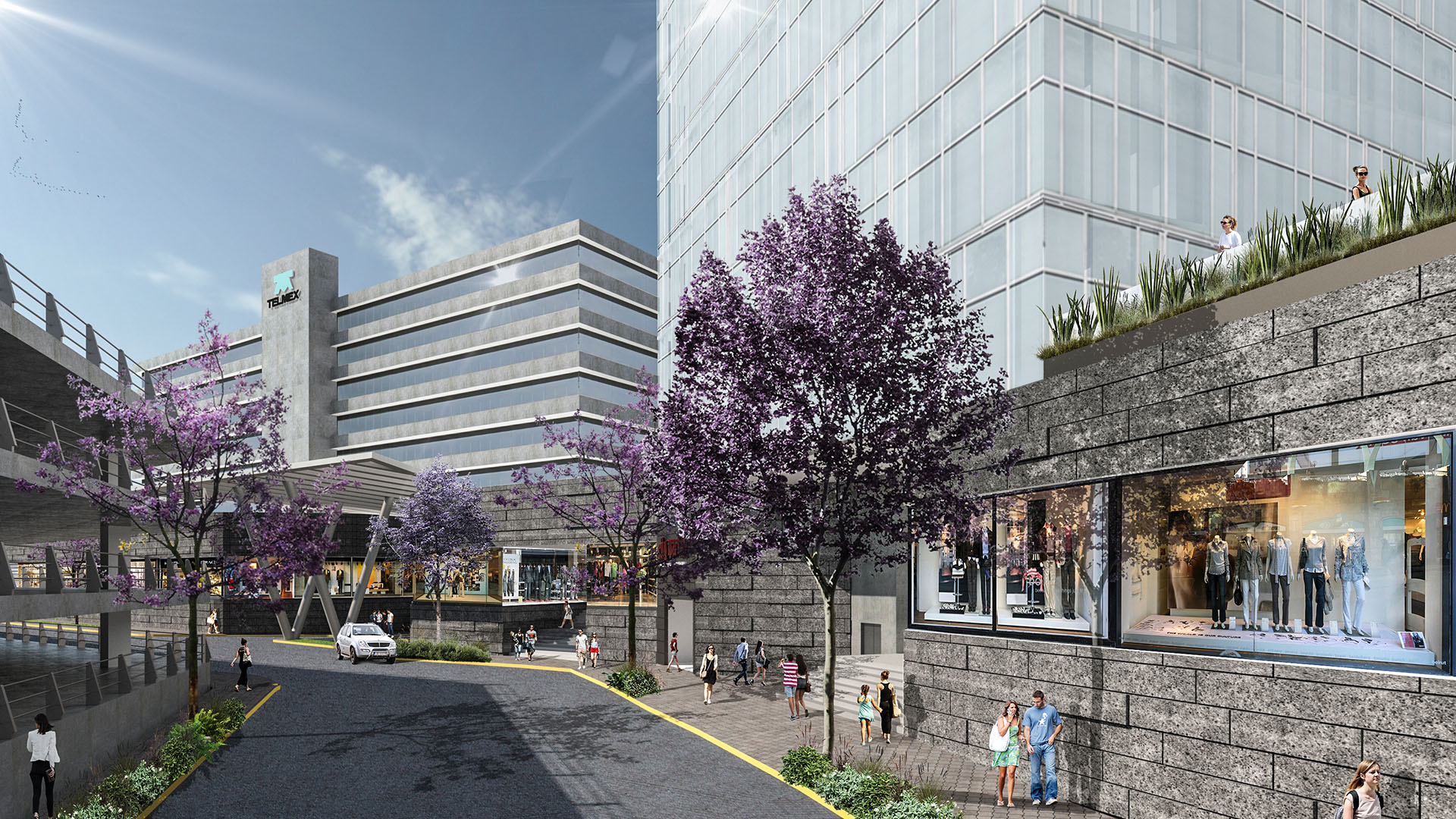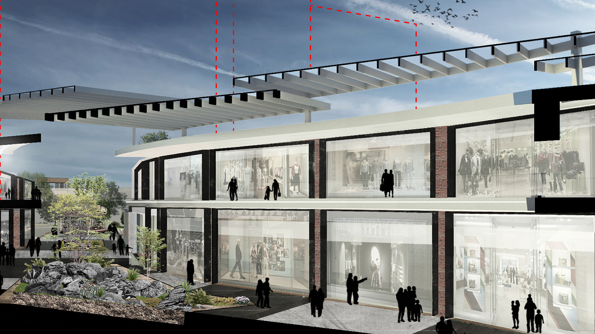Debido a ello, el proyecto reutiliza una zona destinada actualmente como estacionamiento para convertirlo en espacio comercial y generar una pasarela para unificar todas las áreas comerciales del conjunto, a las cuales se incorporan restaurantes y dos tiendas anclas.