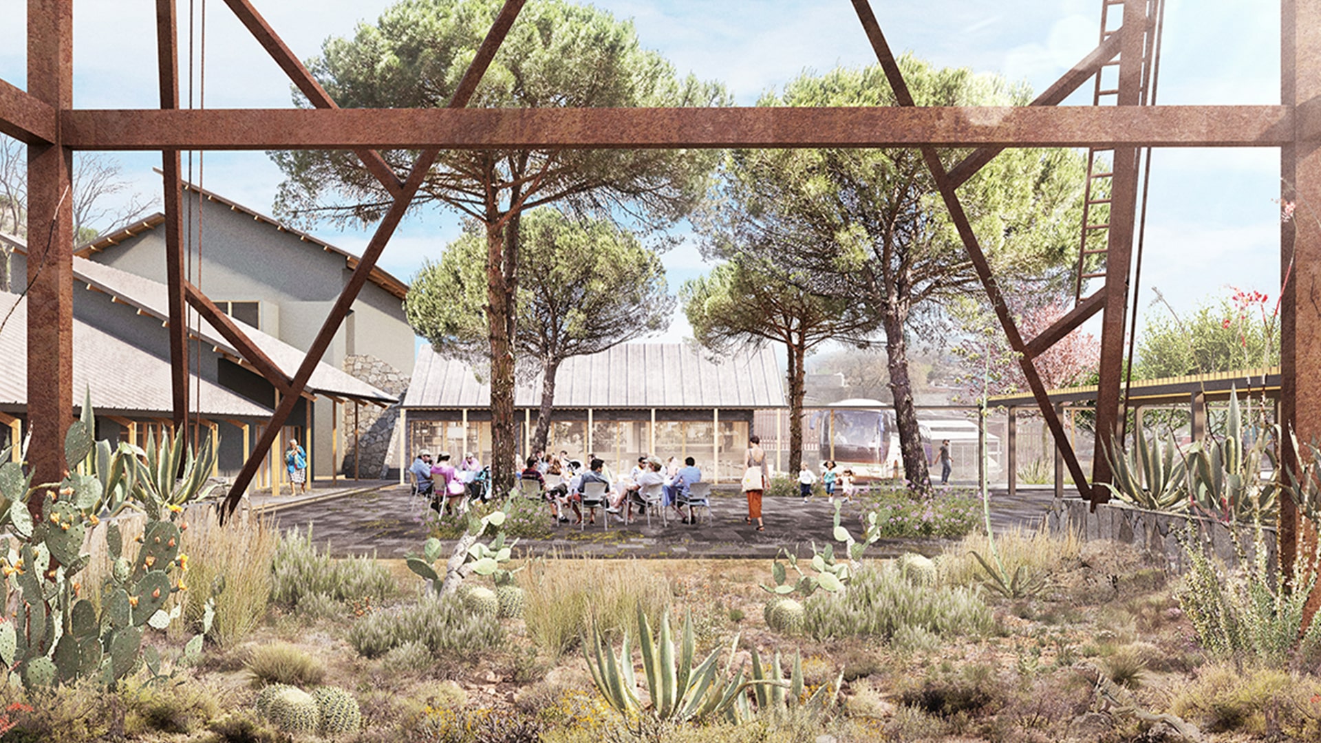El proyecto vincula así la parte más alta del predio con la parte más baja a través de una escalinata que recorre una sección del terreno cerril que se ha reactivado con vegetación endémica y que puede contemplarse desde diferentes puntos de la comunidad.