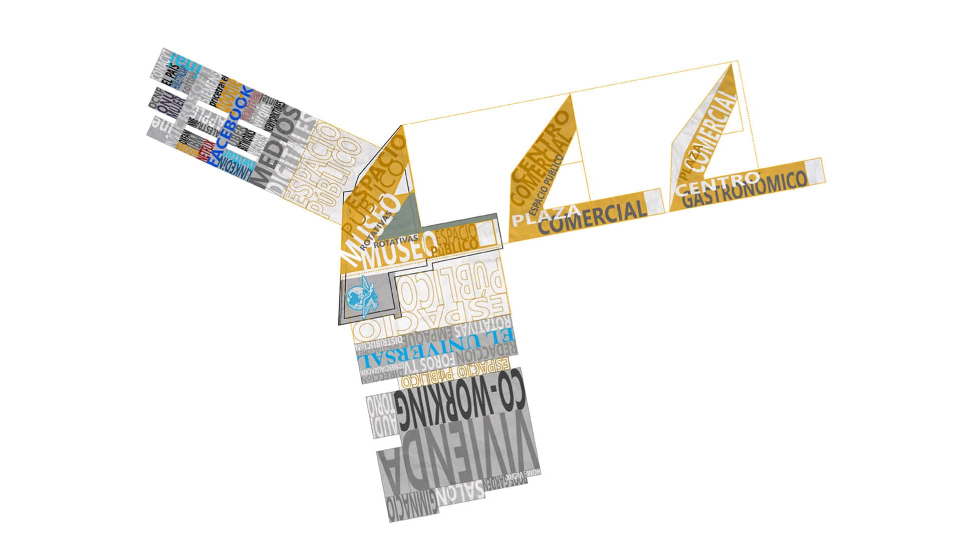 En él, no solo pensamos en la instrumentación de la transferencia de potencialidaes que nos permitiría ganar altura para cumplir con un programa que incluía oficinas, vivienda, y comercio; en cambio elevamos el desplante de esta gran torre para generar un espacio público incorporándolo a la calle como un centro de transferencia modal y un gran bici-estacionamiento y un museo del periódico, manteniendo una lógica de conectividad urbana y estacionamiento cero.